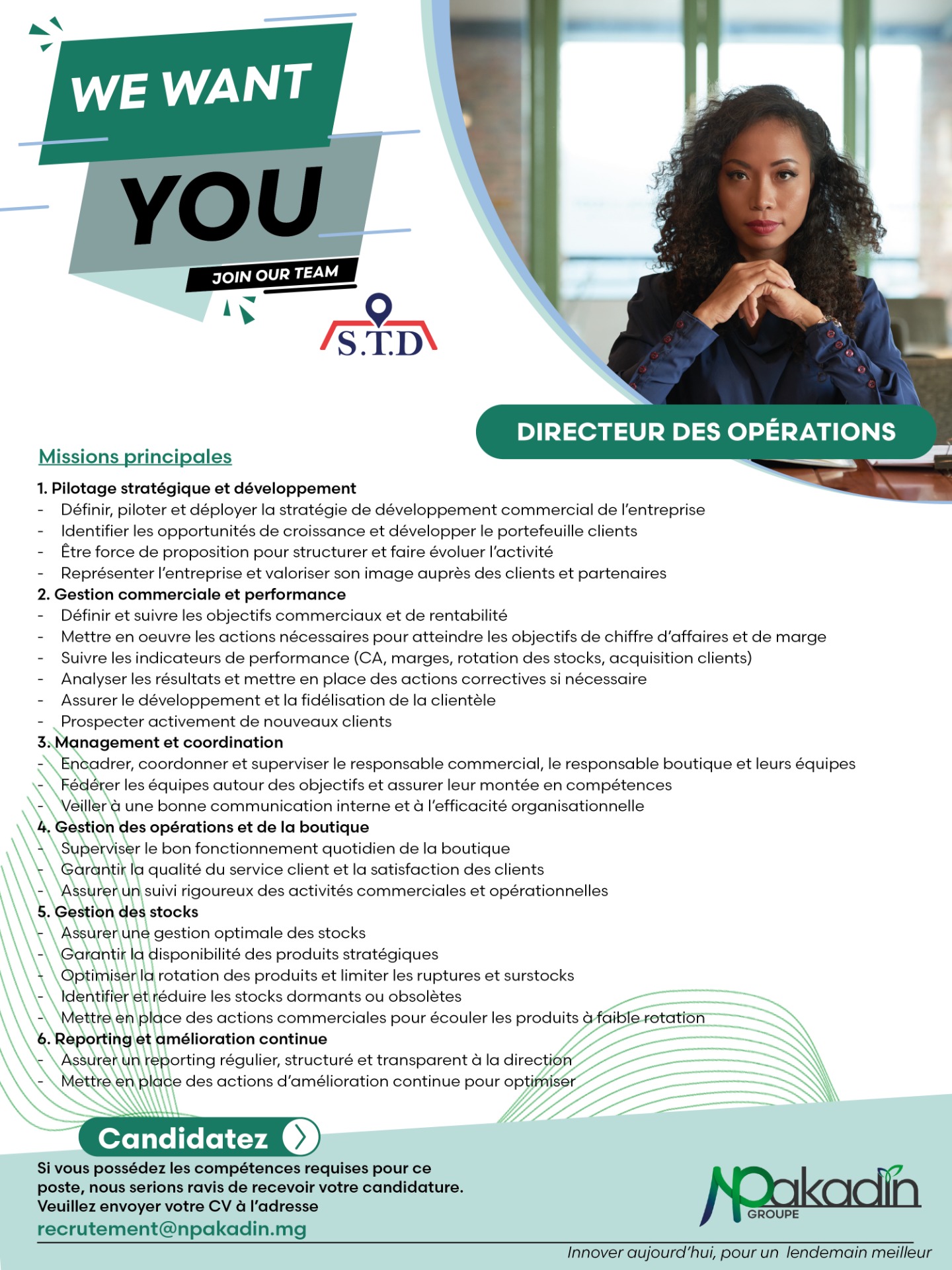 - Assurer un suivi rigoureux des activités commerciales et opérationnelles